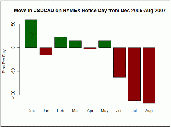 The chart below shows USDCAD movements through Notice Days from December 2006 to present.